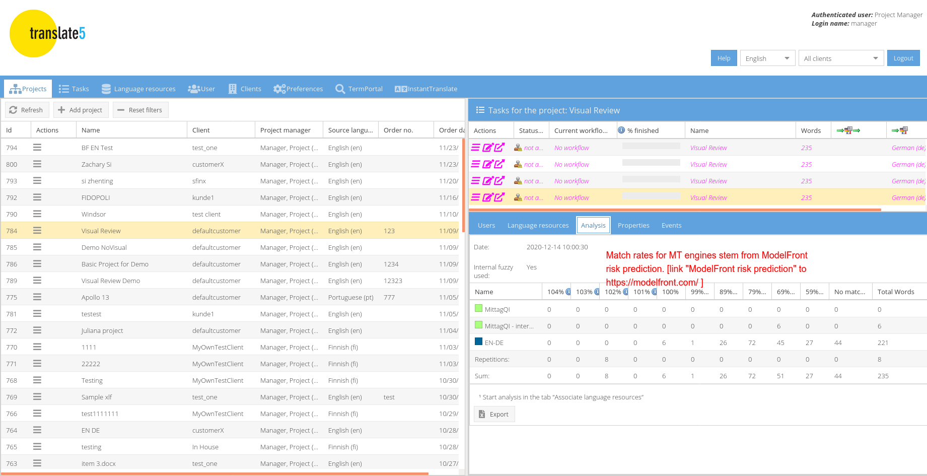 DE: Übereinstimmungsraten für MT-Engines stammen aus der ModelFront-Risikovorhersage