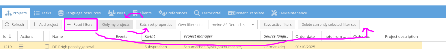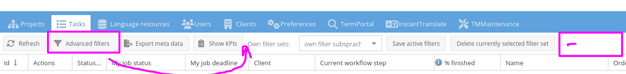 For project managers the amount of projects, language resources etc. can become very hard. Users will apply filters. But for different work scenarios they need to apply different filters. And filtering may consist of many clicks.
