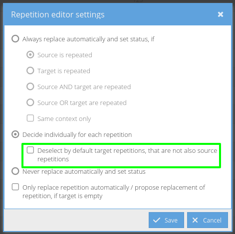 - when segments are processed by back end they are unlocked in front end automatically and content of them is changed to accepted in repetition editor