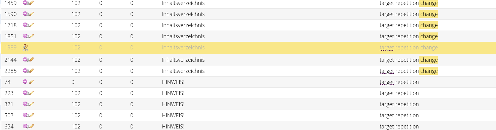 - All segments, that are loaded already in the UI and which are affected repetitions should be locked → should already be the case