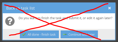 On clicking the back to task list button in a print approval job, do not show the following popup: