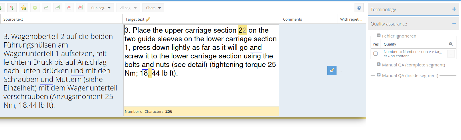 After re-run of the AutoQA and re-opening the task, the error is shown but with "No content". Should there be the exact number listed for which the error is detected?