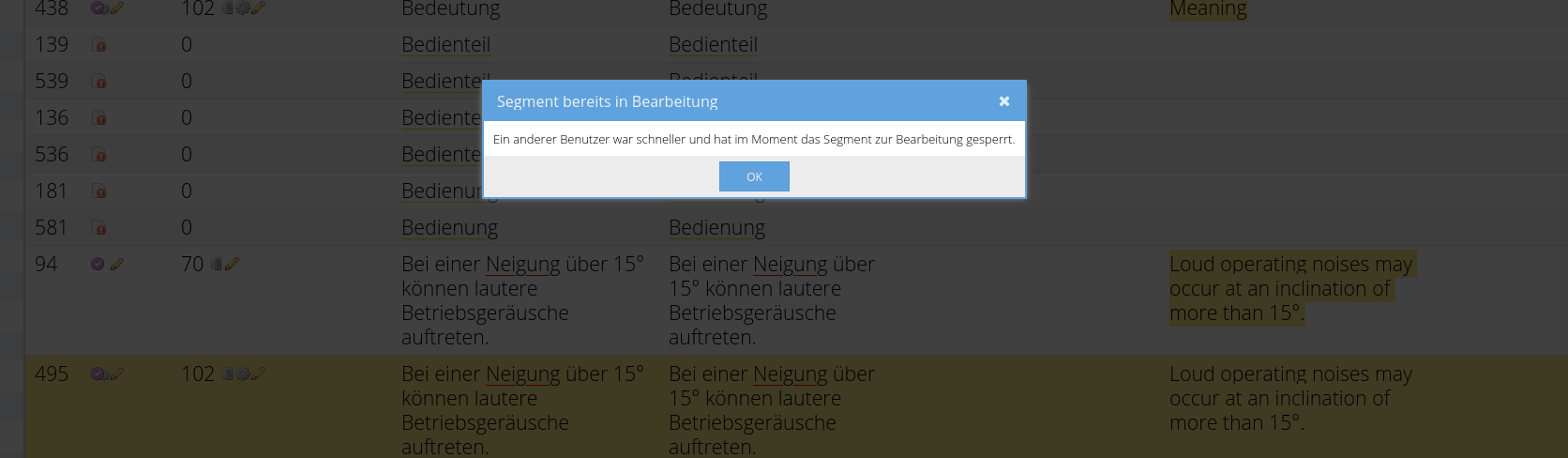 - asynchroneous segment-handling popup will sometimes open / warning that different user was fasterĀ