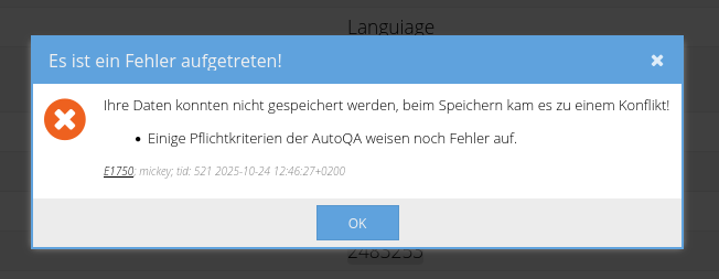 DE: Einige Pflichtkriterien der AutoQA weisen noch Fehler auf.