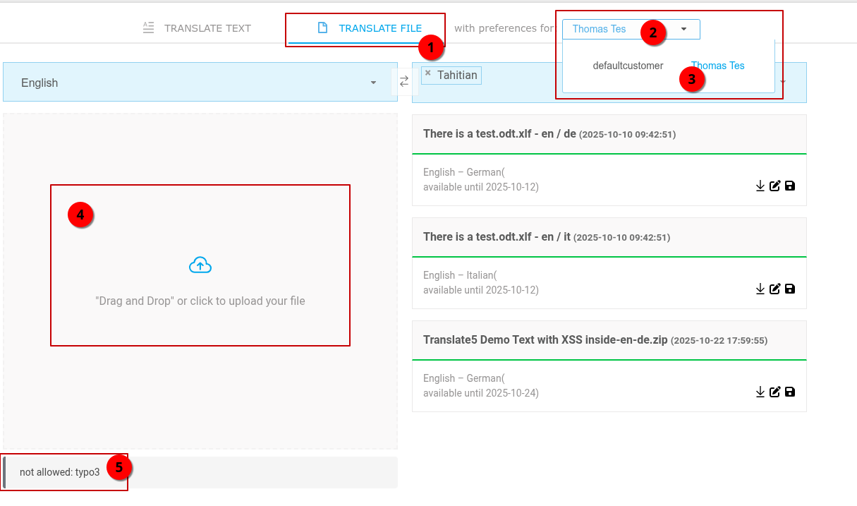 Custom customers file filters are not used for file extension checking when using file translation in InstantTranslate