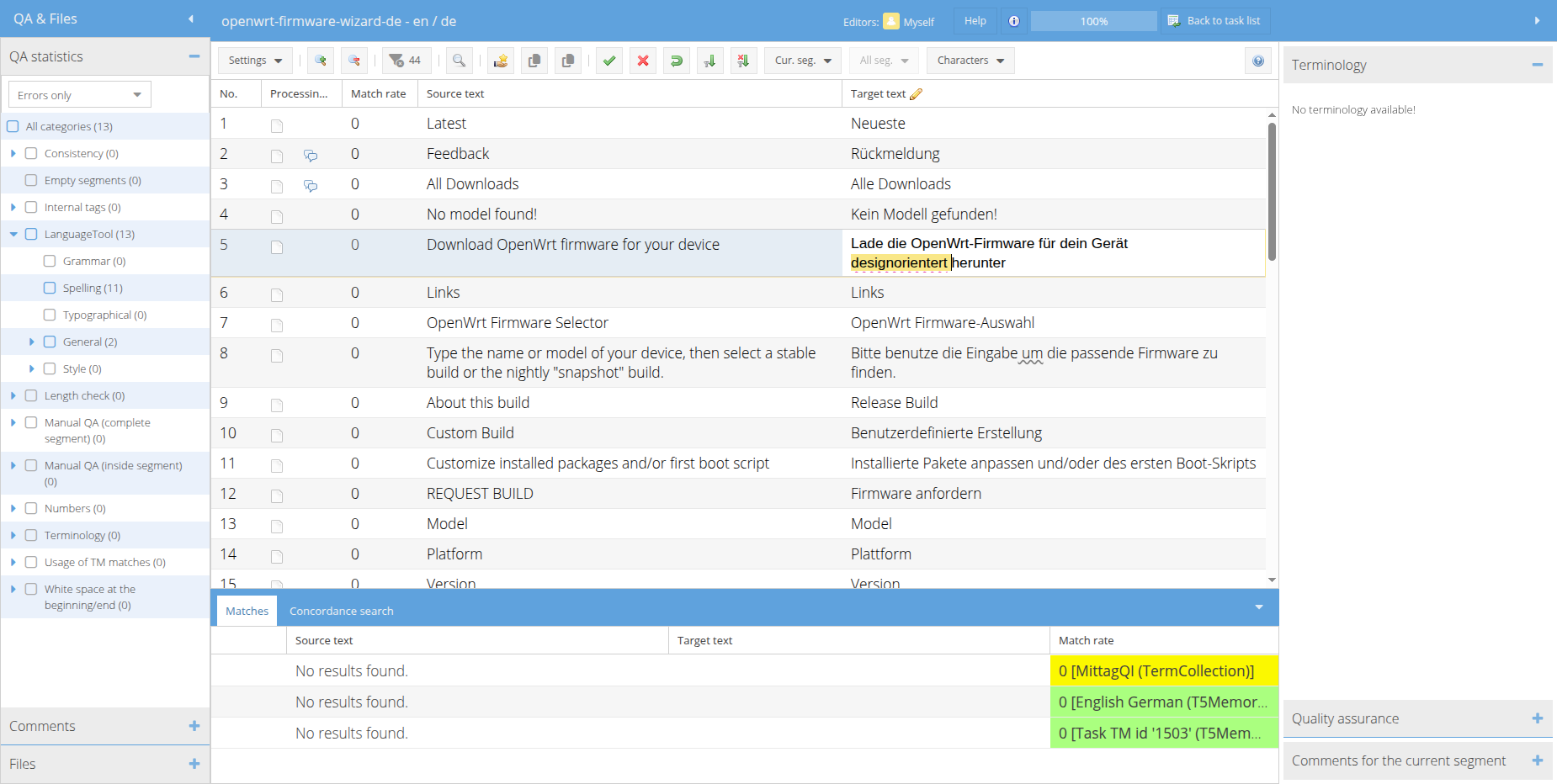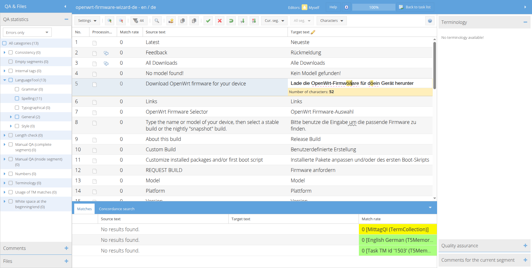 If the char count bar is activated below the open segment or the segment breaks to 2 lines after initially being just one line in Chrome on ubuntu the spell-check markup is hardly visible. Maybe in some browsers not visible at all (at least this is my conclusion of some user feedback). See screenshots and https://personal-demo.translate5.net/editor/taskid/1503/#task/1503/5/edit based on which screenshots have been created.