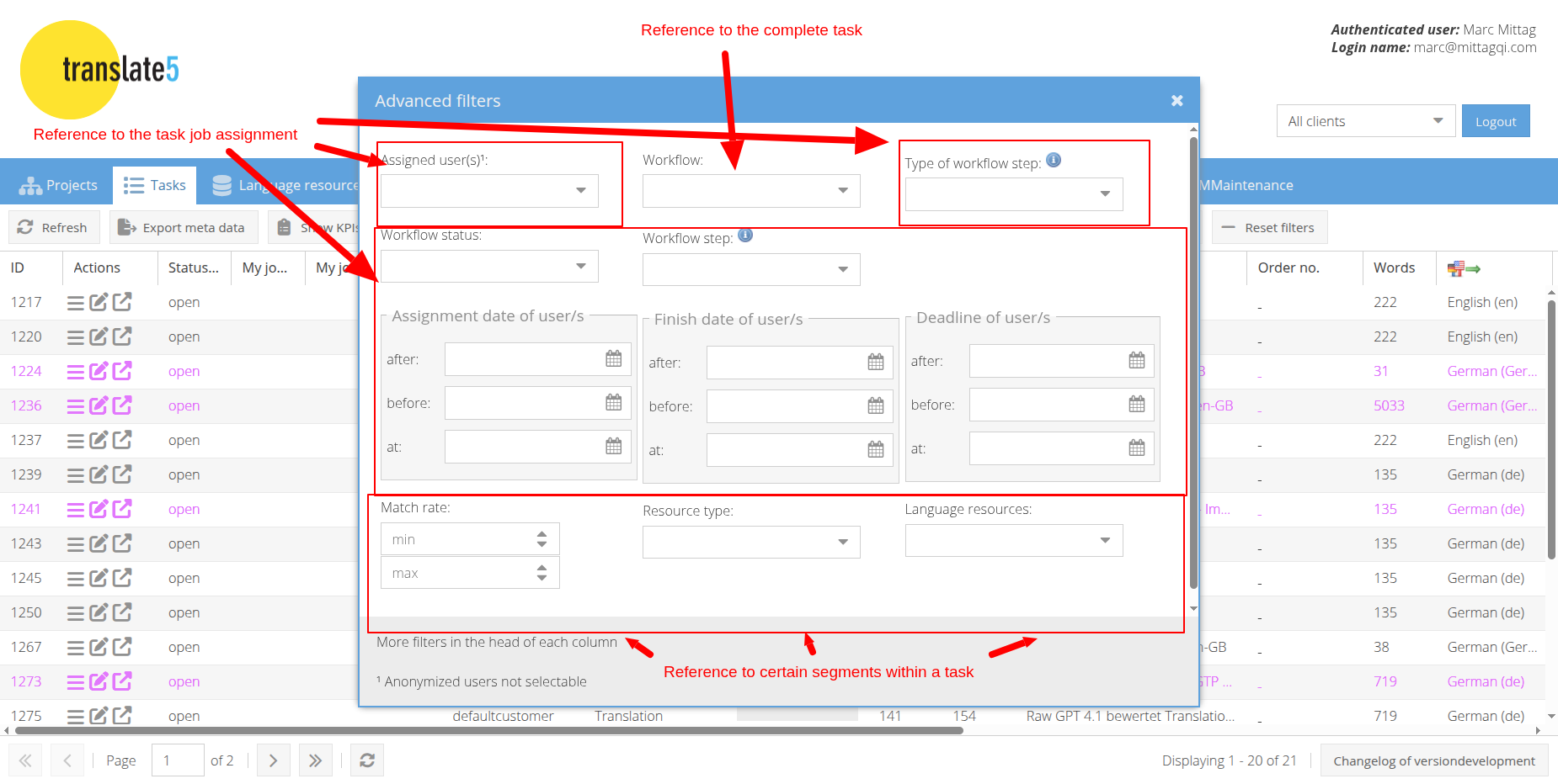 EN: Relation: Job assignment / Workflow step